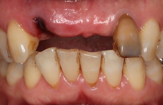 前歯のブリッジを入れていたものの、右上2番の根の尖端に病気ができ、大学病院に相談に行ったが抜歯と言われ歯を抜くことに。